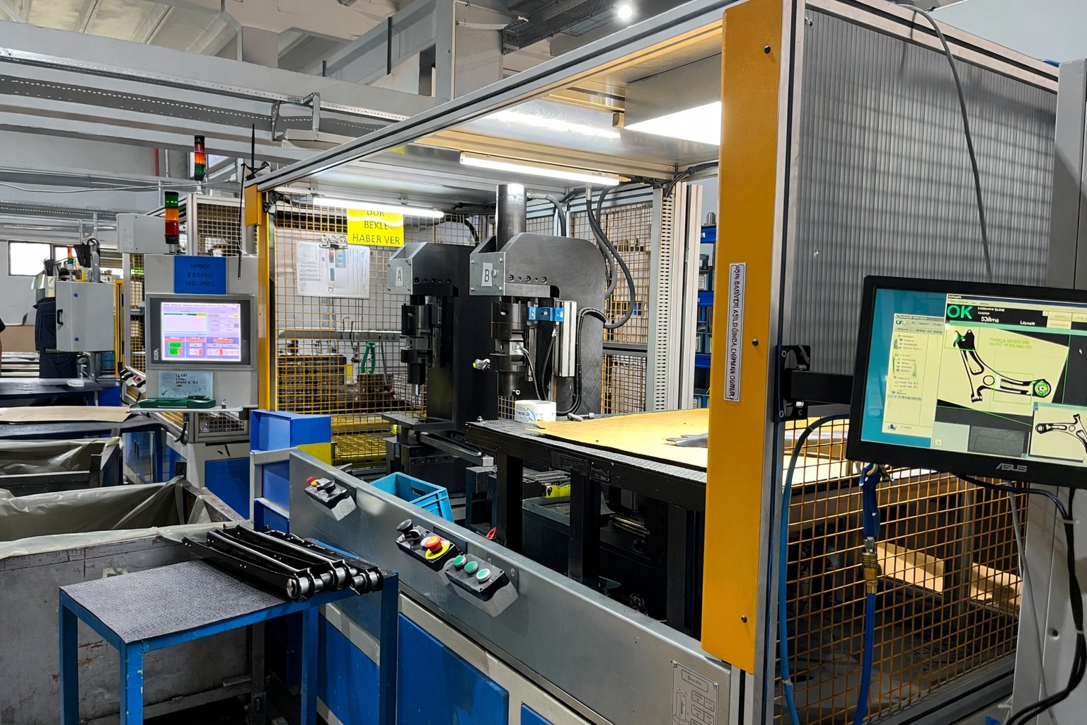 Assembly and riveting processes are carried out with high precision, flexibility, and digital integration capabilities through the smart manufacturing systems developed by Dynaress. The system is designed to support a wide range of components such as control arms, ball joints, bushings, and rubber-to-metal parts, offering a modular structure that can quickly adapt to changing production requirements.